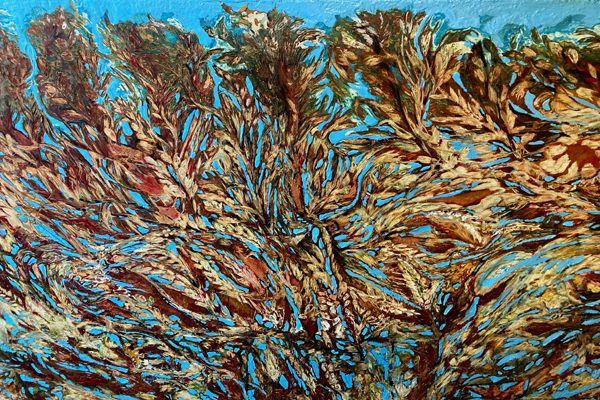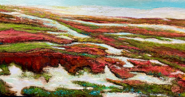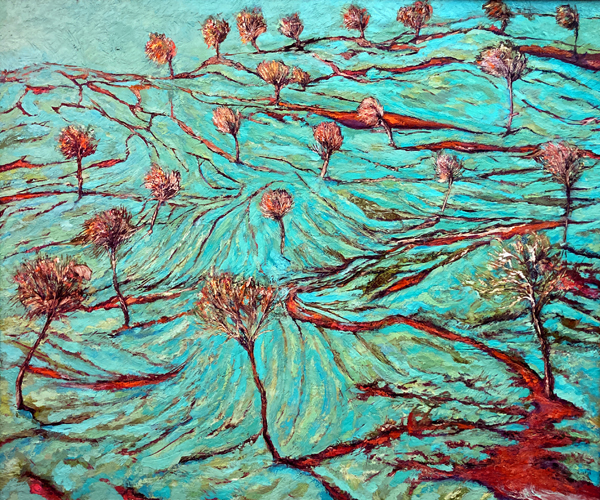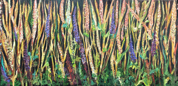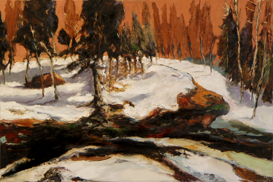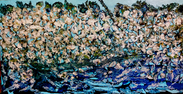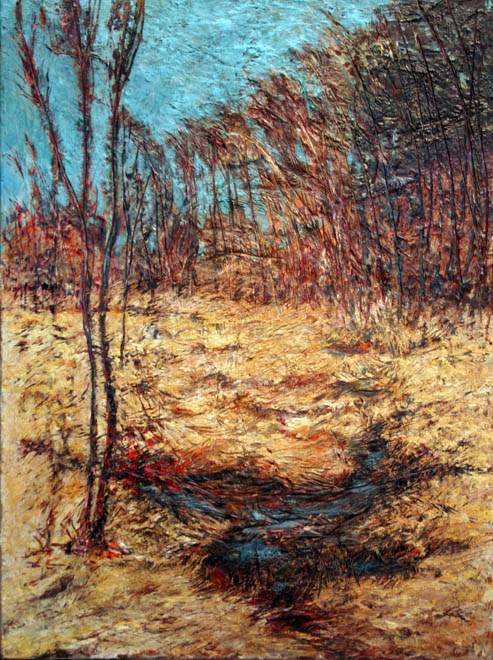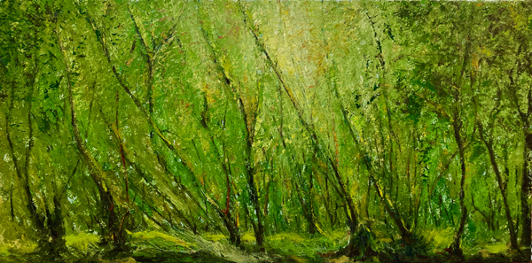 Titel:Birken mit Moor, Mischtechnik auf Leinwand, 2012, 76x45 cm